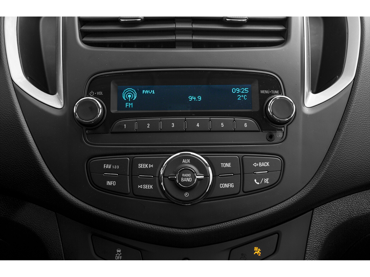 - Chevrolet MyLink radio, 7" diagonal color touch-screen, AM/FM stereo with seek-and-scan and digital clock, includes Bluetooth® streaming audio for music and select phones, TuneIn radio, Stitcher and Siri Eyes Free for compatible smartphones