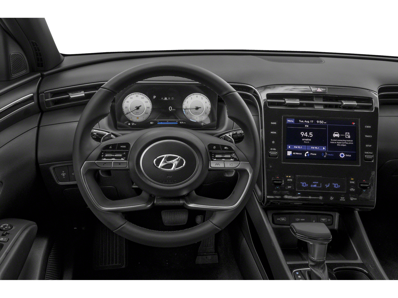 - Radio: AM/FM Audio System -inc: low-cost display audio, 8" color touchscreen, 6 speakers, SiriusXM satellite radio w/3-month trial subscription, HD Radio, Blue Link connected car system, Bluetooth®, wireless Apple CarPlay and Android Auto and dual front high-power USB outlets