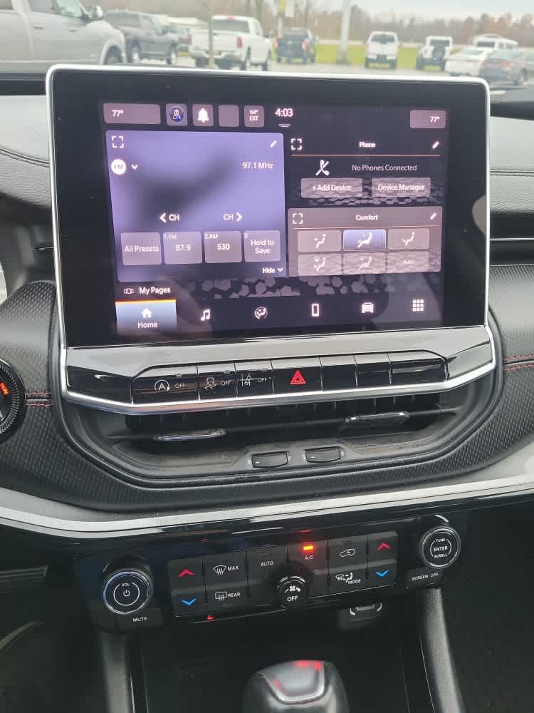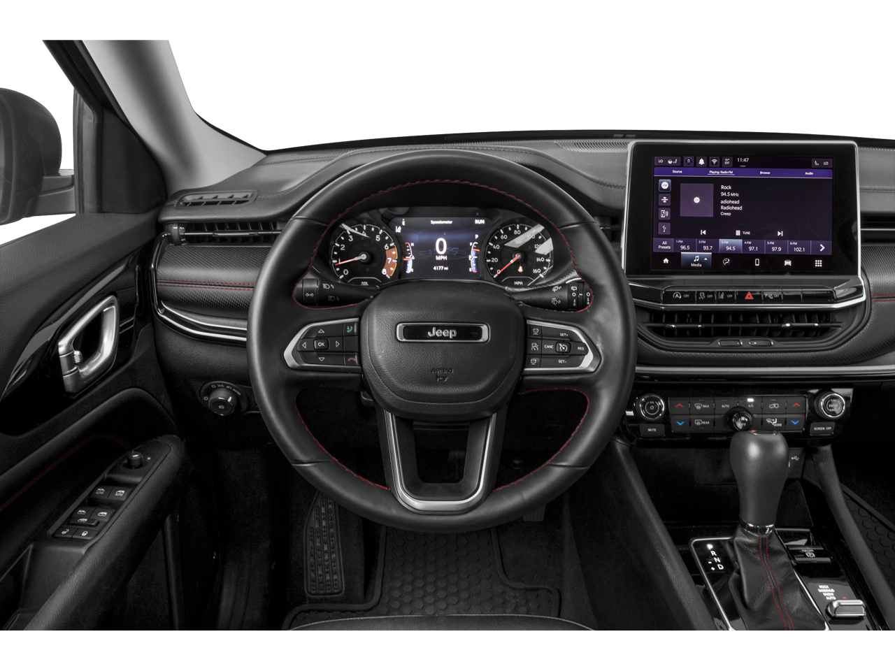 Leather Seats, Back-Up Camera, Premium Sound System, Satellite Radio, iPod/MP3 Input, Onboard Communications System, Aluminum Wheels, Keyless Start, Dual Zone A/C, Lane Keeping Assist, Cross-Traffic Alert, Blind Spot Monitor, Smart Device Integration Jeep Trailhawk with Bright White Clearcoat exterior and Ruby Red/Black interior features a 4 Cylinder Engine with 177 HP at 6400 RPM*.