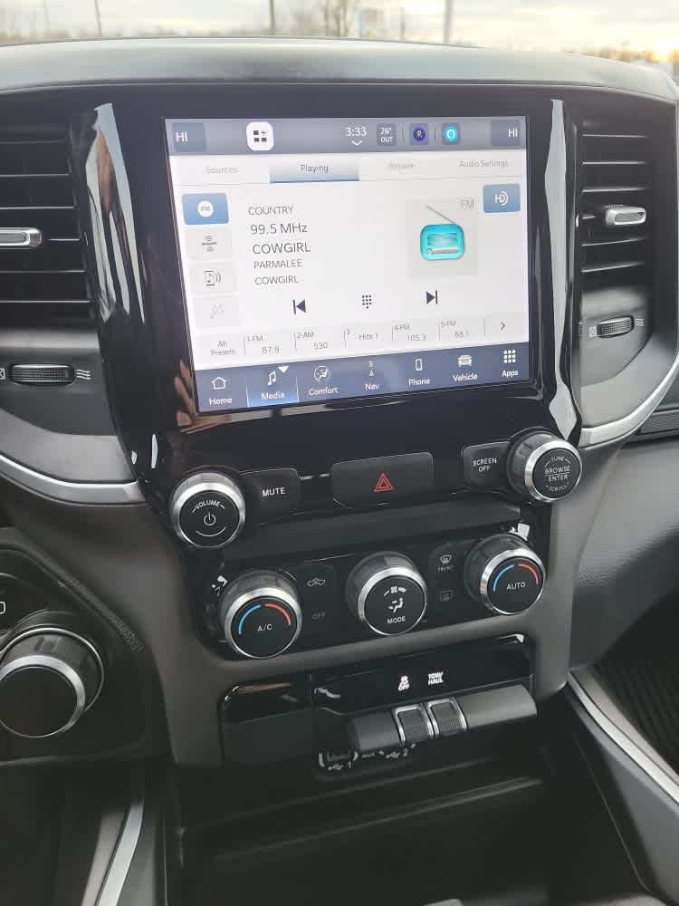 Active Noise Control System, Heavy Duty Engine Cooling, Passive Tuned Mass Damper, GPEC 5 Engine Controller, GVWR: 7,100 lbs, Dual Rear Exhaust w/Bright Tips, HEMI Badge, 23 Gallon Fuel Tank, 18 Aluminum Spare Wheel, Google Android Auto®, SiriusXM Radio Service, Bluetooth® Handsfree Phone & Audio, USB Host Flip, Rear Window Defroster, For Details, Visit DriveUconnect.com, Integrated Center Stack Radio, Rear View Auto Dim Mirror, Power Adjustable Pedals, Rear Power Sliding Window, Rear Dome w/On/Off Switch Lamp, Connectivity - US/Canada, Glove Box Lamp, 4G LTE Wi-Fi Hot Spot, Exterior Mirrors w/Heating Element, Power 8-Way Driver Seat, Auto Dim Exterior Driver Mirror, Radio: Uconnect 5 W w/8.4 Display, 8.4 Touchscreen Display, Class IV Receiver Hitch, Black Premium Power Mirrors, Apple CarPlay®, Big Horn IP Badge, SiriusXM Satellite Radio, Exterior Mirrors w/Supplemental Signals, Exterior Mirrors Courtesy Lamps, Universal Garage Door Opener, Cluster 3.5 TFT Color Display, Power-Folding Mirrors, 2nd Row, WHEELS: 20 X 9 ALUMINUM CHROME CLAD (WRK), Google Android Auto®, SiriusXM Radio Service, USB Host Flip, Disassociated Touchscreen Display, HD Radio, For Details, Visit DriveUconnect.com, Integrated Center Stack Radio, Connectivity - US/Canada, Air Conditioning ATC w/Dual Zone Control, GPS Navigation, 4G LTE Wi-Fi Hot Spot, SiriusXM w/360L, All Radio Equipped Vehicles, Connected Travel & Traffic Services, All R1 High Radios, 8.4 Touchscreen Display, Apple CarPlay®, Power 8-Way Driver Seat, Bucket Seats, Manual Adjust 4-Way Front Passenger Seat, Full Length Floor Console, Rear Center Armrest, Delete LED Lamp - Floor Console Bin, Power 2-Way Driver Lumbar Adjust, REMOTE START SYSTEM, TRANSMISSION: 8-SPEED AUTOMATIC (8HP75). MP3 Player, Privacy Glass, Keyless Entry, Child Safety Locks, Steering Wheel Controls.