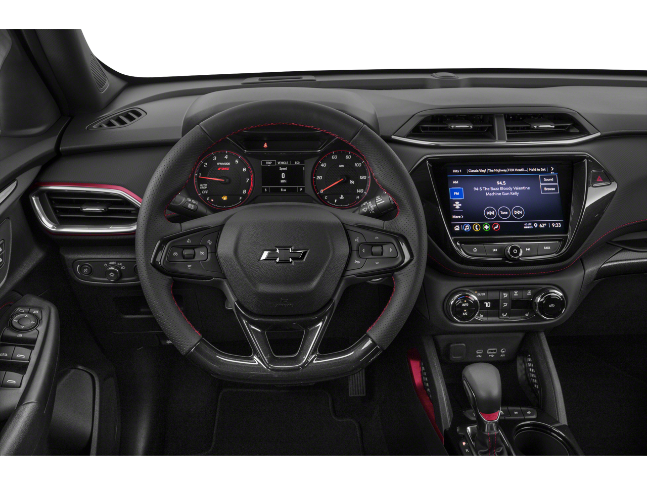 Blind Spot Monitor, Cross-Traffic Alert, 4-Wheel ABS, Tire Pressure Monitoring System, 4-Wheel Disc Brakes Chevrolet RS with Mosaic Black Metallic exterior and Jet Black with Red accents interior features a 3 Cylinder Engine with 155 HP at 5600 RPM*.