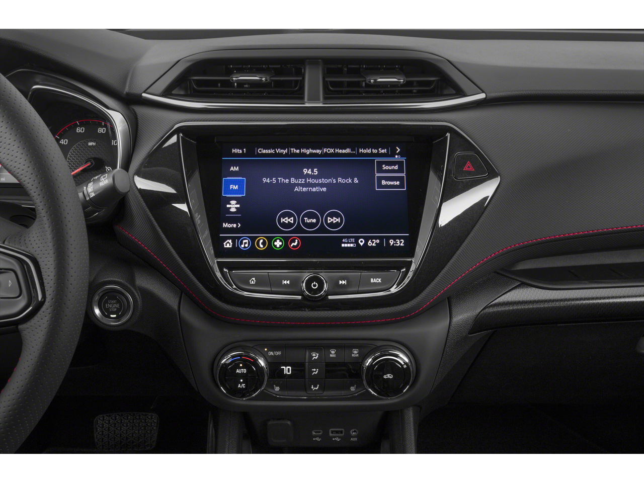 SUN AND LIFTGATE PACKAGE includes (C3U) power, dual-pane, panoramic sunroof and (TC2) power, programmable hands-free liftgate with LED logo projection, TECHNOLOGY PACKAGE includes (IOS) Chevrolet Infotainment 3 Plus system, (U2L) HD Radio, SiriusXM with 360L, (UQA) Bose premium 7-speaker system, (MCR) memory card receptacle, (K4C) Wireless Charging, (KSG) Adaptive Cruise Control, (UVB) HD Rear Vision Camera, (UDD) enhanced, 4.2 diagonal multi-color display Driver Information Center and (T4L) LED headlamps, CONVENIENCE PACKAGE includes (C68) automatic climate control air conditioning, (UIJ) 8 diagonal color touchscreen display, (USS) one type-A and one type-C charging only USB ports, (KI6) 120-volt power outlet, (DD8) inside rearview auto-dimming mirror and (DMS) driver and front passenger illuminated vanity mirrors, covered, sliding visors, DRIVER CONFIDENCE PACKAGE includes (UKC) Lane Change Alert with Side Blind Zone Alert, (UFG) Rear Cross Traffic Alert and (UD7) Rear Park Assist (Beginning with start of production through November 28, 2022, vehicles will be forced to include (00Y) Not Equipped with Rear Park Assist, which removes Rear Park Assist. See dealer for details or the window label for the features on a specific vehicle. Beginning December 26, 2022, certain vehicles will be forced to include (060) Not Equipped with Rear Park Assist, which removes Rear Park Assist. Does not include later dealer retrofit. See dealer for details or the window label for the features on a specific vehicle.), AUDIO SYSTEM, CHEVROLET INFOTAINMENT 3 PLUS SYSTEM 8 diagonal HD color touchscreen, AM/FM stereo, Bluetooth® audio streaming for 2 active devices, Apple CarPlay® and Android Auto® capable, voice recognition, in-vehicle apps, cloud connected personalization for select infotainment and vehicle settings. ENGINE, ECOTEC 1.3L I3 TURBO DOHC SIDI WITH VARIABLE VALVE TIMING (VVT) (155 hp [115 kW] @ 5600 rpm, 174 lb-ft torque [236 N-m] @ 1600 rpm) (STD), TRANSMISSION, 9-SPEED AUTOMATIC (STD).