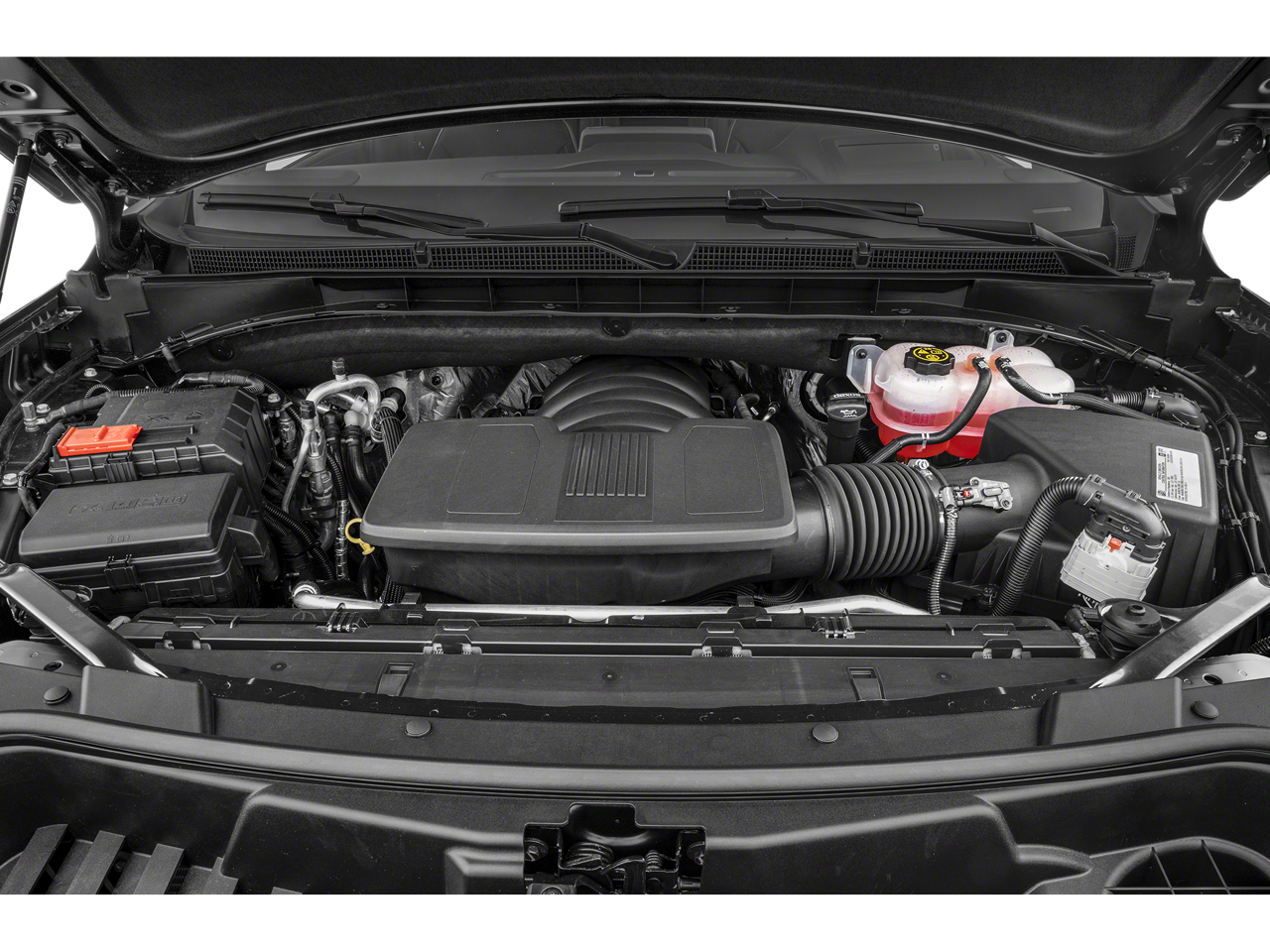 with Dynamic Fuel Management, Direct Injection and Variable Valve Timing, includes aluminum block construction (420 hp [313 kW] @ 5600 rpm, 460 lb-ft of torque [624 Nm] @ 4100 rpm), tilt-sliding with express-open and close and power sunshade, includes (UV2) HD Surround Vision, (UV6) Head-Up Display and (UKK) Rear Pedestrian Alert, SEATS, SECOND ROW BUCKET, POWER RELEASE, includes color touch-screen, multi-touch display, AM/FM stereo, Bluetooth® streaming audio for music and most phones; featuring wireless Android Auto® and Apple CarPlay® capability for compatible phones, advanced voice recognition, in-vehicle apps, personalized profiles for infotainment and vehicle settings (STD), electronically controlled with overdrive, includes Traction Select System including tow/haul (STD). Remote Trunk Release, Keyless Entry, Privacy Glass, Steering Wheel Controls, Child Safety Locks.