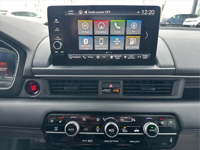 - Radio: Bose Premium Sound System -inc: 12 speakers w/subwoofer, 9" color touchscreen, Bluetooth® HandsFreeLink and streaming audio, Radio Data System (RDS), Speed-sensitive Volume Compensation (SVC), front 12-volt power outlet, wireless Apple CarPlay and Android Auto compatibility, Wi-Fi hotspot capability, Qi wireless phone charger, SMS text message function, SiriusXM (SiriusXM requires a subscription after any trial period, If you decide to continue your SiriusXM service at the end of your trial subscription, the plan you choose will automatically renew and bill at then-current rates until you call SiriusXM at 1-866-635-2349 to cancel, See our customer agreement for complete terms at www.siriusxm.com, Fees and programming subject to change, Available in the 48 contiguous United States and D.C, SiriusXM and all related marks and logos are trademarks of SiriusXM Radio Inc.), HD Radio, 2.5-amp USB type-A smartphone/audio interface port in front console, 3.0-amp USB type-C charging port in front console, Honda Satellite-Linked Navigation System w/voice recognition and Honda Real-Time Traffic (The Honda Satellite-Linked Navigation System functions in the United States (not including territories, except Puerto Rico) and Canada, Honda HD Digital Traffic service is only available in the United States, except Alaska, Please see your Honda dealer for details.), HondaLink subscription services ( complimentary trials of security for 1 year and a remote/concierge trial for 3 months, Enrollment is required to access the remote/concierge trial and to access certain features of security, At the end of each trial period, purchase of a subscription is required to continue the respective services.), multi-zone audio and CabinTalk in-car PA system