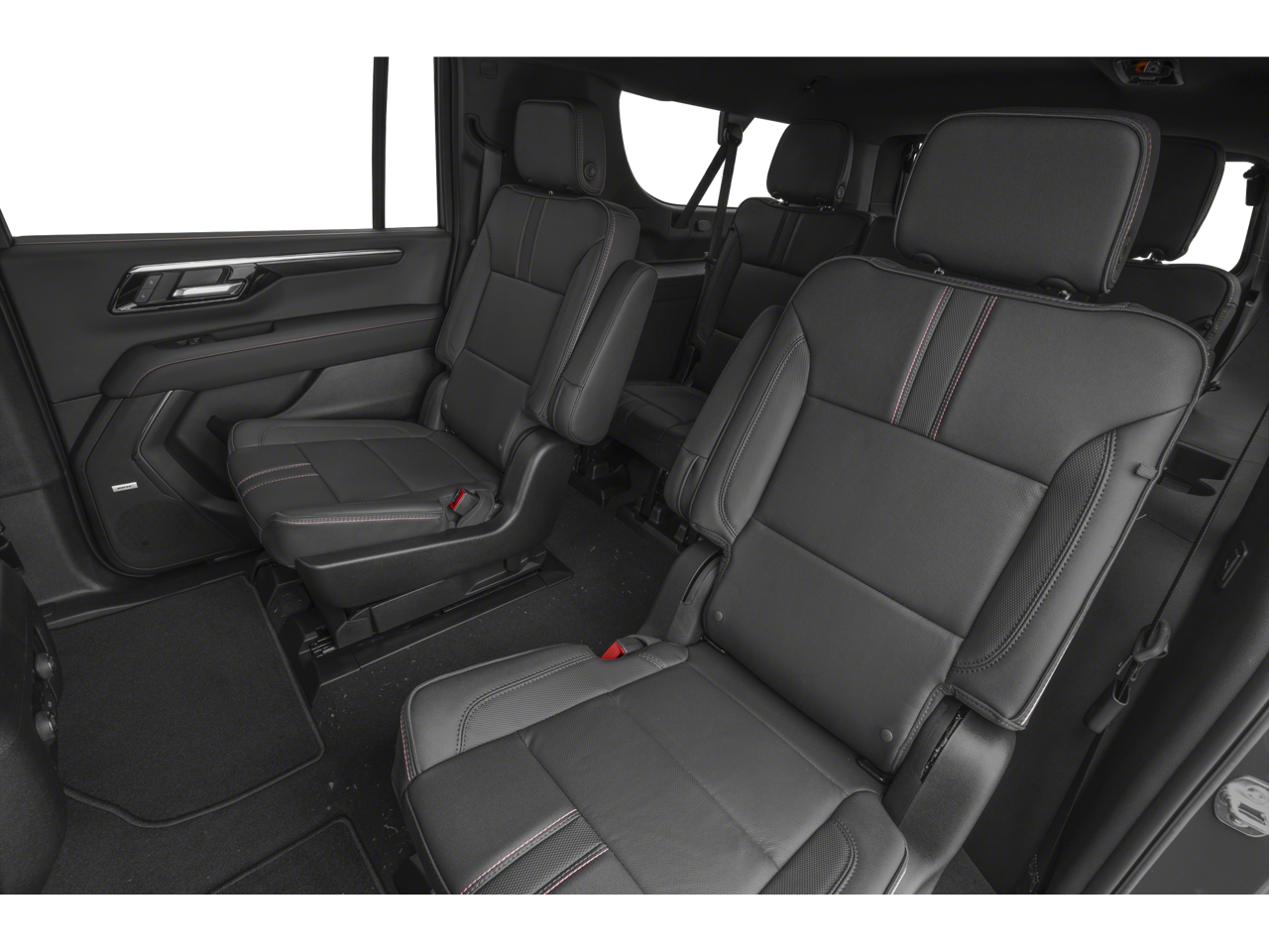 includes (A45) memory settings, (UQS) Bose 10-speaker Surround with CenterPoint, (DXR) outside heated power-adjustable, power-folding, body-color mirrors with driver-side auto-dimming and integrated turn signal indicators, (KI3) heated steering wheel, (KA6) second row outboard heated seats, (ATT) second row power 60/40 split-folding bench seats, (AS8) third row power 60/40 split-folding bench seats, (TGE) LED animated headlamps and (TAU) LED animated tail lamps, with express-open and close and power sunshade, includes (RIA) 1st and 2nd row all-weather floor liners, LPO, (RIB) 3rd row all-weather floor liner, LPO and (CAV) all-weather cargo mat, LPO (dealer-installed), SEATS, SECOND ROW BUCKET, POWER RELEASE, 3 YEARS SIRIUSXM, SUSPENSION, AIR RIDE ADAPTIVE, with Dynamic Fuel Management, Direct Injection and Variable Valve Timing, includes aluminum block construction (355 hp [265 kW] @ 5600 rpm, 383 lb-ft of torque [518 Nm] @ 4100 rpm) (STD), electronically controlled with overdrive, includes Traction Select System including tow/haul (STD), with Google built-in compatibility (select service plan required, terms and limitations apply), including navigation capability, connected apps, personalized profiles for each drivers settings, Natural Voice Recognition and Phone Integration (STD), includes (UKW) Blind Zone Steering Assist with Trailering, (PZ8) Hitch View and (UET) Smart Trailer Integration Indicator. MP3 Player, Remote Trunk Release, Keyless Entry, Privacy Glass, Child Safety Locks.
