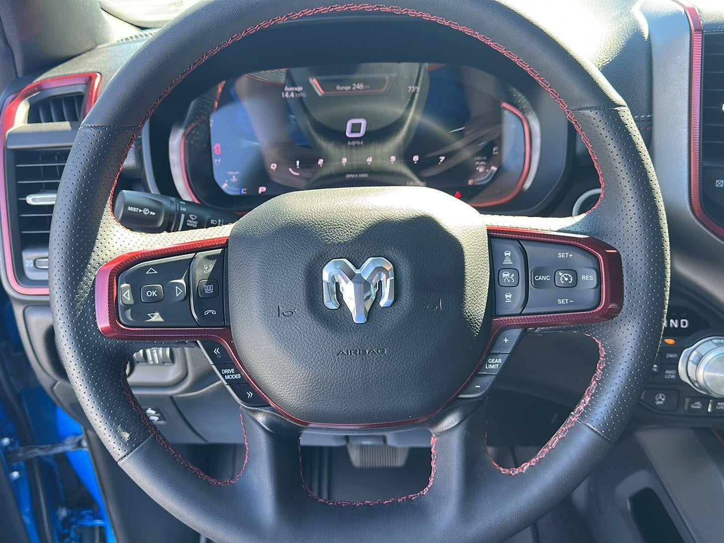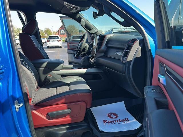 This 2025 Ram 1500 Rebel, has a Hydro Blue Pearlcoat exterior and Red/Black interior color with only 14,498 miles. Stock Number T3348A. You can connect